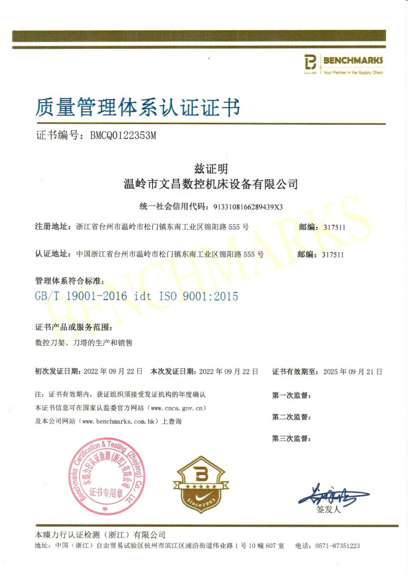 質(zhì)量管理體系認(rèn)證證書